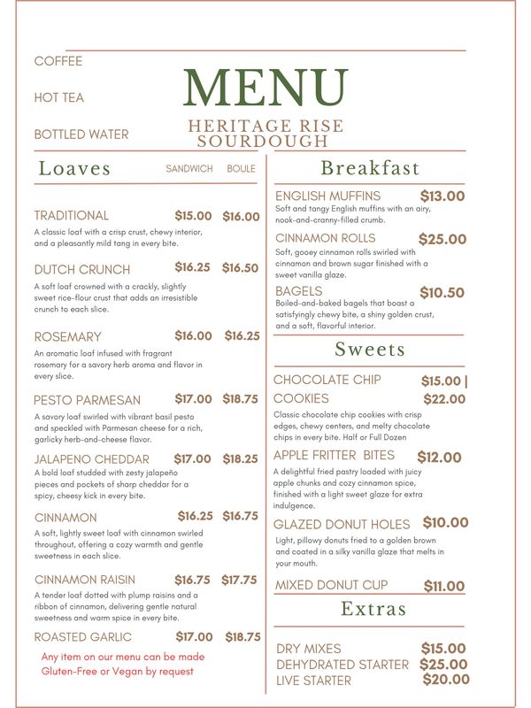 Hi there! We’re Courtney and Michael, the heart and hands behind Heritage Rise Sourdough.